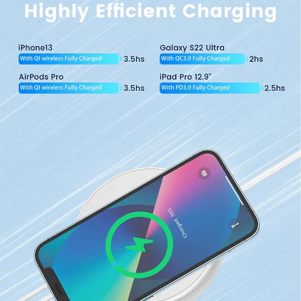 【15W QI wireless charger】Automatically match between 15/10/7.5/5W charging modes according to your device’s power requirements for optimal charging. With wireless charging pad, you can check the status of your device at any time during the charging process without having to unplug and re-plug it into the charging port.